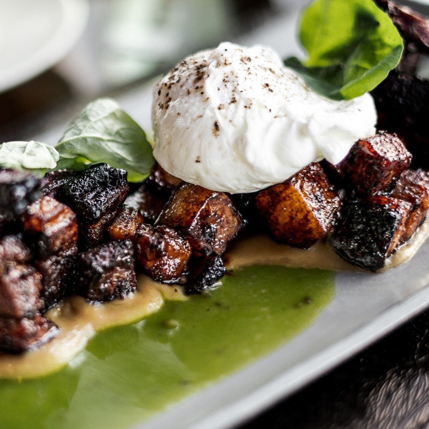 We’re giving a special callout to Ascend Prime Steak & Sushi’s lardon, hash & eggs made with crispy braised porkbelly, ube potato hash, and tonkotsu broth poached eggs. Plenty of protein to fuel your day.
